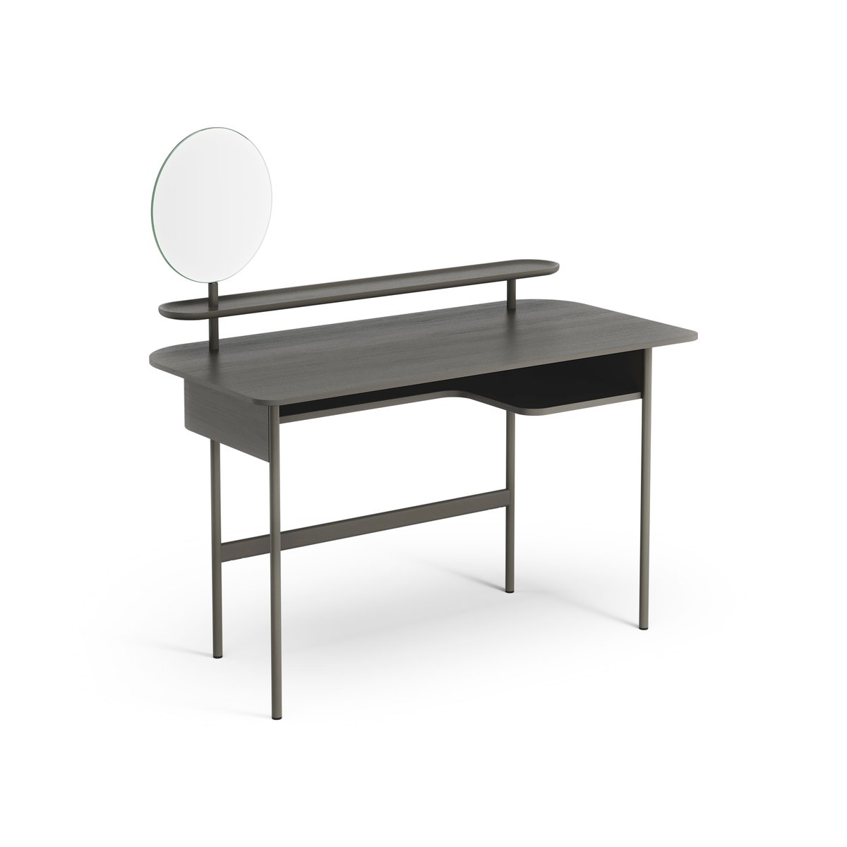 Swedese Luna Schreibtisch mit Schublade, Regal und Spiegel Eiche Orkangrau